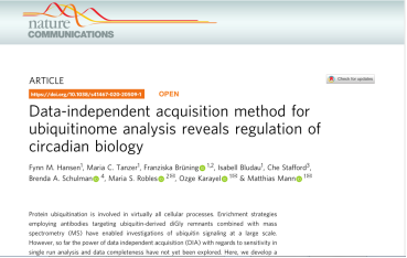 作者开发了一种灵敏且稳定性好的基于 DIA 的工作流程,该方法比DDA具有更大的优势、更高的通量以及更高的稳定性和准确性,将基于diGly抗体的富集和优化的基于 Orbitrap 的DIA与包含超过90,000 种diGly肽的综合光谱库相结合,应用于TNF信号研究,工作流程全面捕获已知位点,同时添加许多新位点。对整个昼夜节律周期中泛素化的深入、全系统研究后发现数百个循环泛素化位点和单个膜蛋白受体以及转运蛋白中的数十个循环泛素簇,突出了新陈代谢与昼夜节律调节之间的新联系。