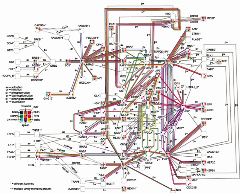 结合不同的同位素标记技术、高效率的富集方法和高通量质谱,我们能鉴定到不同样品间的磷酸化修饰水平的变化,从而确定激酶的靶点或抑制剂的调控通路。