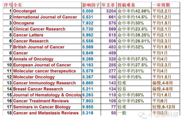 这里面有大家最为熟悉的Oncotarget,Clinical Cancer Research,Cancer Research,Cancer Letters等杂志。其中Oncotarget为大家公认的“灌水”杂志,年文章量3200多篇,远高于第二名International Journalof Cancer的661篇,仅比第二名到第八名的年文章量总和(3768)少一点,命中率42.86%,2015年中国人文章占该期刊总数量 26%,不愧为大家升职毕业申金之必备杀器。