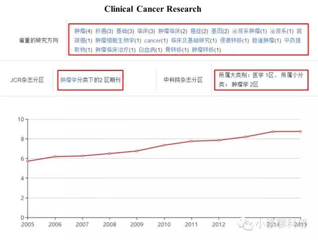 而小兄弟Clinical Cancer Research近十年则一直呈稳步上升趋势,最近的影响因子是8.7,照这趋势下去2016年突破九分应该问题不大。