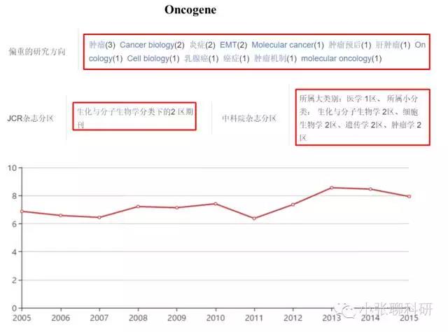 下面我们看杂志Oncogene,Oncogene由 NATURE PUBLISHING GROUP 出版社出版,出版周期是周刊,年文章量575,影响因子区间为6到8.5分,2015年为7.9,刚下8分,不过总体来看Oncogene的影响因子波动不大,如无意外,估计2016年还是在8分上下浮动。