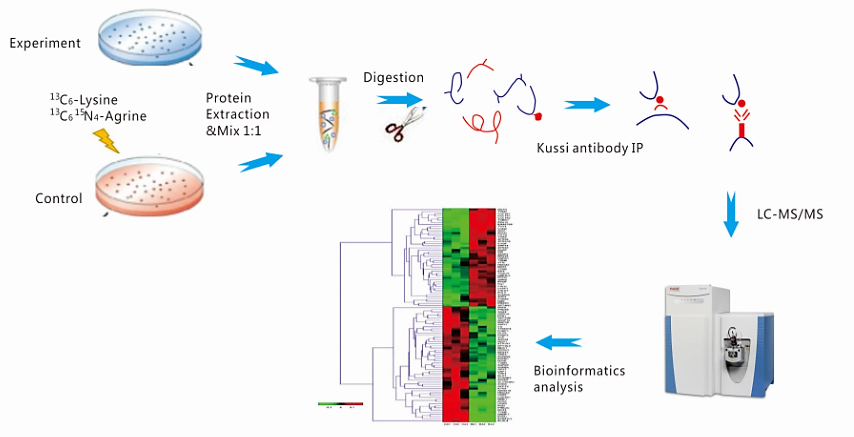 研究细胞模型中HAT、HDAC的底物或HDACi的作用靶点时,通常采用稳定同位素标记培养基中的氨基酸(Lysine),同时结合抗体富集、高分辨率质谱的方法分析不同处理细胞系中的乙酰化组,并通过肽段一级谱图获得相对定量信息。