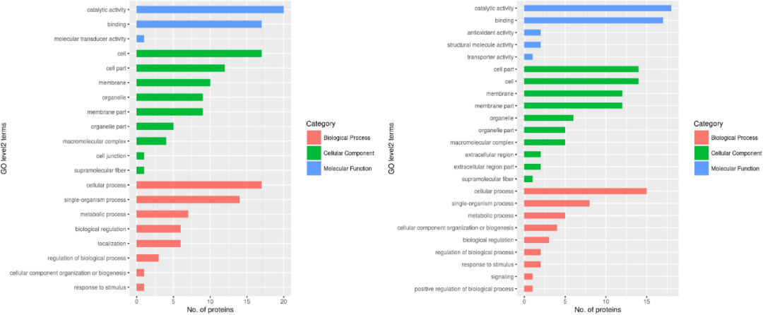 图7 差异蛋白GO分类(左:雌性;右:雄性)