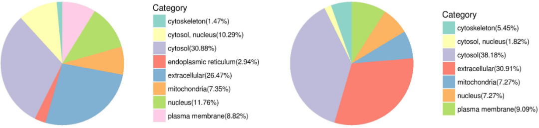 图8 差异蛋白亚细胞定位分析(左:雌性;右:雄性)