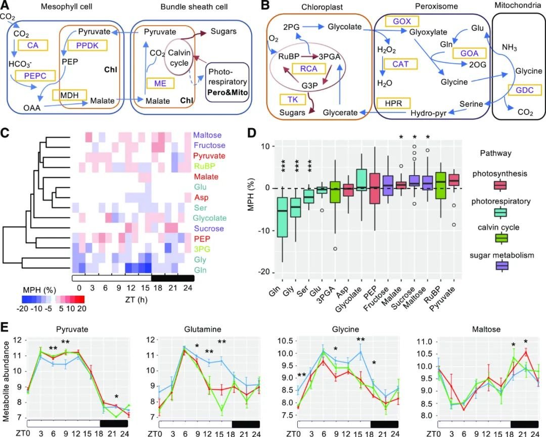 图7 光呼吸通路和卡尔文循环中关键酶的时间丰度