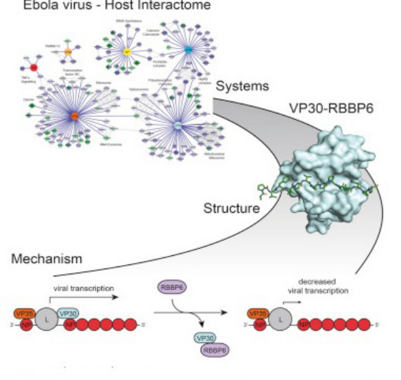 研究发现,RBBP6模仿了一种名为NP的埃博拉蛋白。埃博拉病毒复制需要VP30和NP彼此结合。而人类RBBP6蛋白通过与VP30连接打断这个过程,阻断两种埃博拉病毒蛋白连接,从而阻止病毒复制。进一步研究表明,抑制RBBP6会刺激病毒转录,加速埃博拉病毒的复制;而上调RBBP6蛋白表达则会有效抑制埃博拉病毒复制,阻止病毒感染。