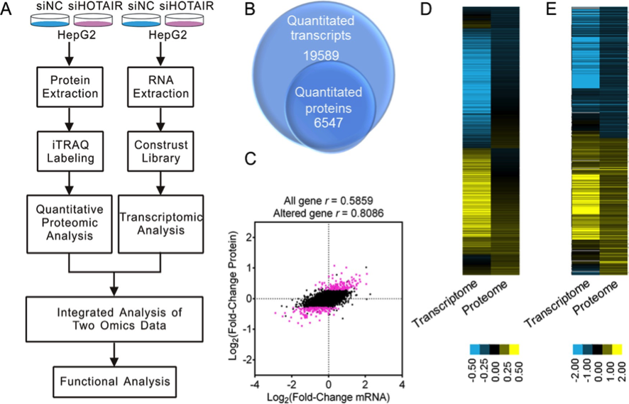 HOTAIR敲除后肝癌细胞转录组和蛋白质组鉴定和分析