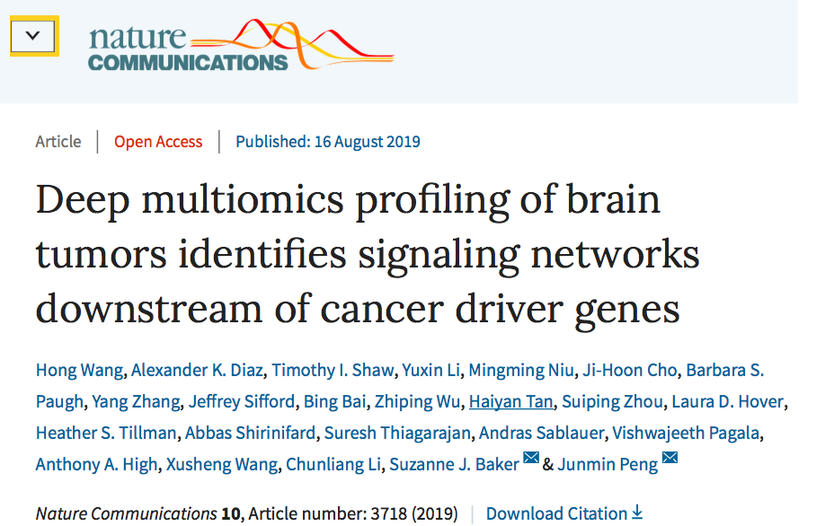 Hong Wang, Alexander K. Diaz, et al. Deep multiomics profiling of brain tumors identifies signaling networks downstream of cancer driver genes. Nat Commun. (2019) 3718