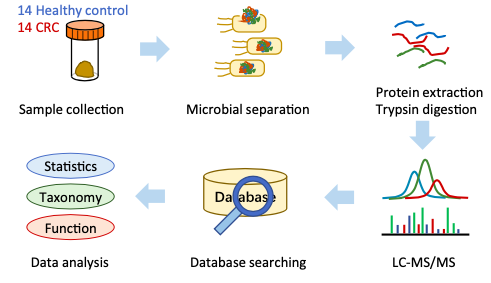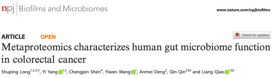 Shuping Long, Yi Yang, et al. Metaproteomics characterizes human gut microbiome function in colorectal cancer. NPJ Biofilms and Microbiomes volume. (2020) 14