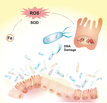 蛋白数据与过去关于红肉摄入导致大肠癌风险增加的报道高度一致,同时清除游离铁可以抑制结直肠癌细胞的生长。另外,CRC患者肠腔高铁浓度促进活性氧(ROS)的产生,导致高氧化应激。肠道细菌中超氧化物歧化酶(SODs)的浓度增加。过量的ROS可引起肠上皮细胞和益生菌DNA损伤,加速CRC的发生发展。