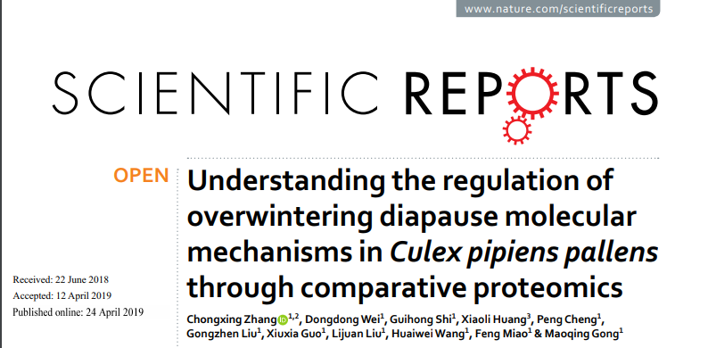 参考文献:Chongxing Zhang, Dongdong Wei, Guihong Shi, Xiaoli Huang, Peng Cheng, Gongzhen Liu, Xiuxia Guo, Lijuan Liu, Huaiwei Wang, Feng Miao, Maoqing Gong, et al. Understanding the regulation of overwintering diapause molecular mechanisms in Culex pipiens pallens through comparative proteomics, Science report