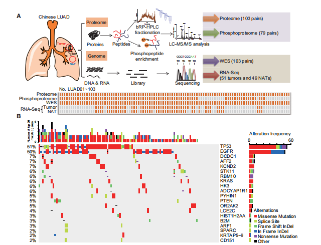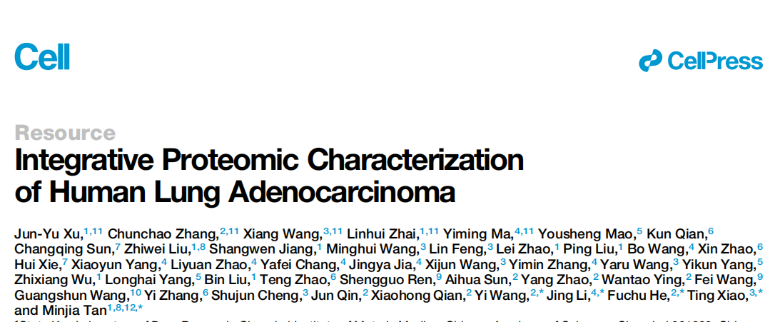 肺腺癌(LUAD)的基因组研究提高了我们对疾病生物学的理解,加速了靶向治疗,但是人们对于LUAD的蛋白质组学特性仍知之甚少。为此,来自中科院上海药物研究所等机构的科学家们对103名中国肺腺癌患者进行了全面的蛋白质组学分析研究。近期,Cell期刊报道了这个研究的成果。