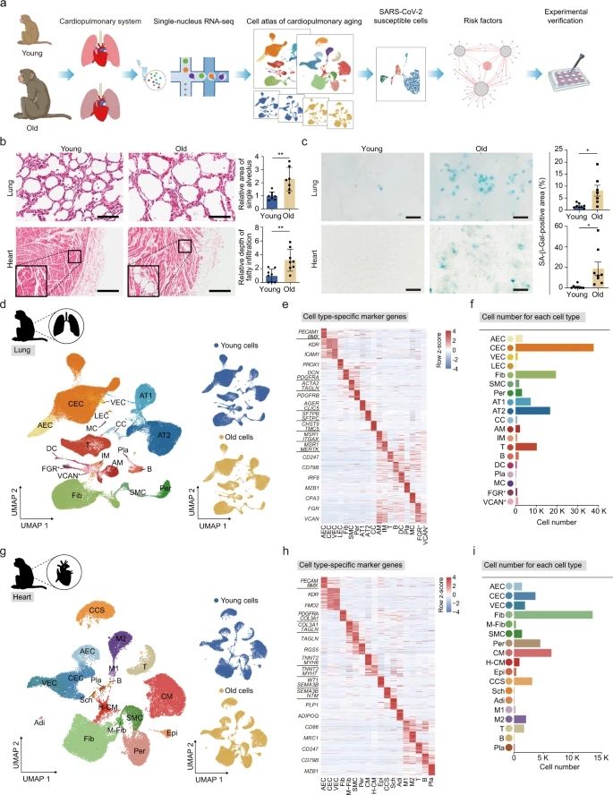年轻人和老年人的灵长类动物肺和心脏的特征和单核转录组谱分析