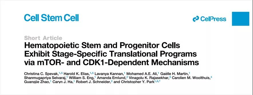 参考文献:Spevak CC, et al. 2020. Hematopoietic Stem and Progenitor Cells Exhibit Stage-Specific Translational Programs via mTOR- and CDK1-Dependent Mechanisms. Cell Stem Cell.
