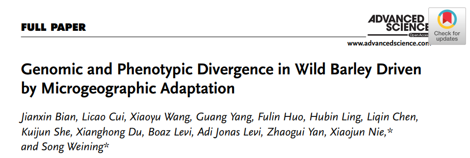 Bian, J., Cui, L., Wang, X., Yang, G., Huo, F., Ling, H., … Weining, S. (2020). Genomic and Phenotypic Divergence in Wild Barley Driven by Microgeographic Adaptation. Advanced Science, 2000709. doi:10.1002/advs.202000709.