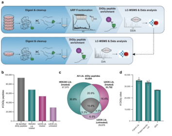 泛素化是一种可逆的、高度通用的翻译后修饰(PTM ),涉及几乎所有的细胞过程。利用针对泛素衍生的diGly残留物的抗体结合质谱(MS)的富集策略已使泛素信号通路的大规模研究成为可能。但到目前为止,尚未探索数据独立采集 (DIA) 在单次运行分析中的灵敏度和数据完整性方面的能力。