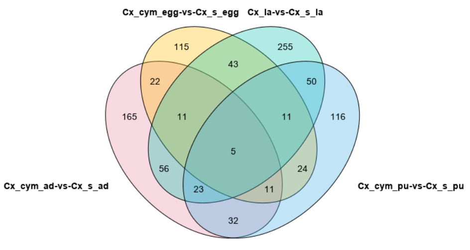 注:Cx_cym:氯氰菊酯抗性株;Cx_s:氯氰菊酯敏感株;egg:卵时期;larvae(la):幼虫期;pupae(pu):蛹时期;adult(ad):成虫期。