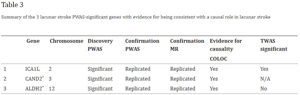 Zhang C, Qin F, Li X, Du X, Li T. Identification of novel proteins for lacunar stroke by integrating genome-wide association data and human brain proteomes. BMC Med. 2022 Jun 23;20(1):211.